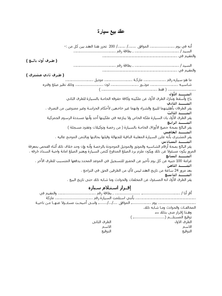 مبايعة عقد بيع سيارة