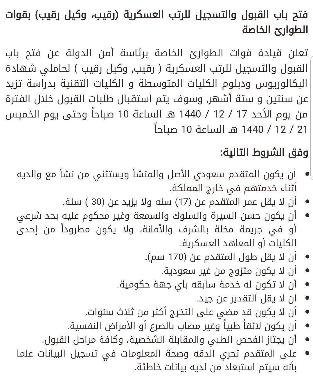 حمد المنيف On Twitter للتذكير قيادة قوات الطوارئ الخاصة برئاسة أمن الدولة تعلن عن فتح باب القبول والتسجيل للرتب العسكرية رقيب وكيل رقيب لحاملي شهادة البكالوريوس ودبلوم الكليات المتوسطة والكليات التقنية