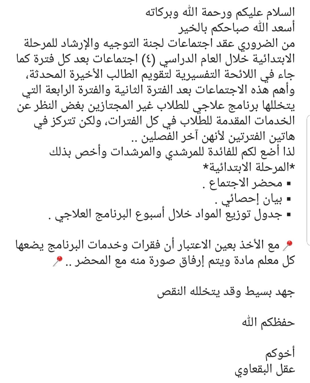 أحدث نموذج تقرير في القسم حول سوء سلوك تلميذ بصيغة Word
